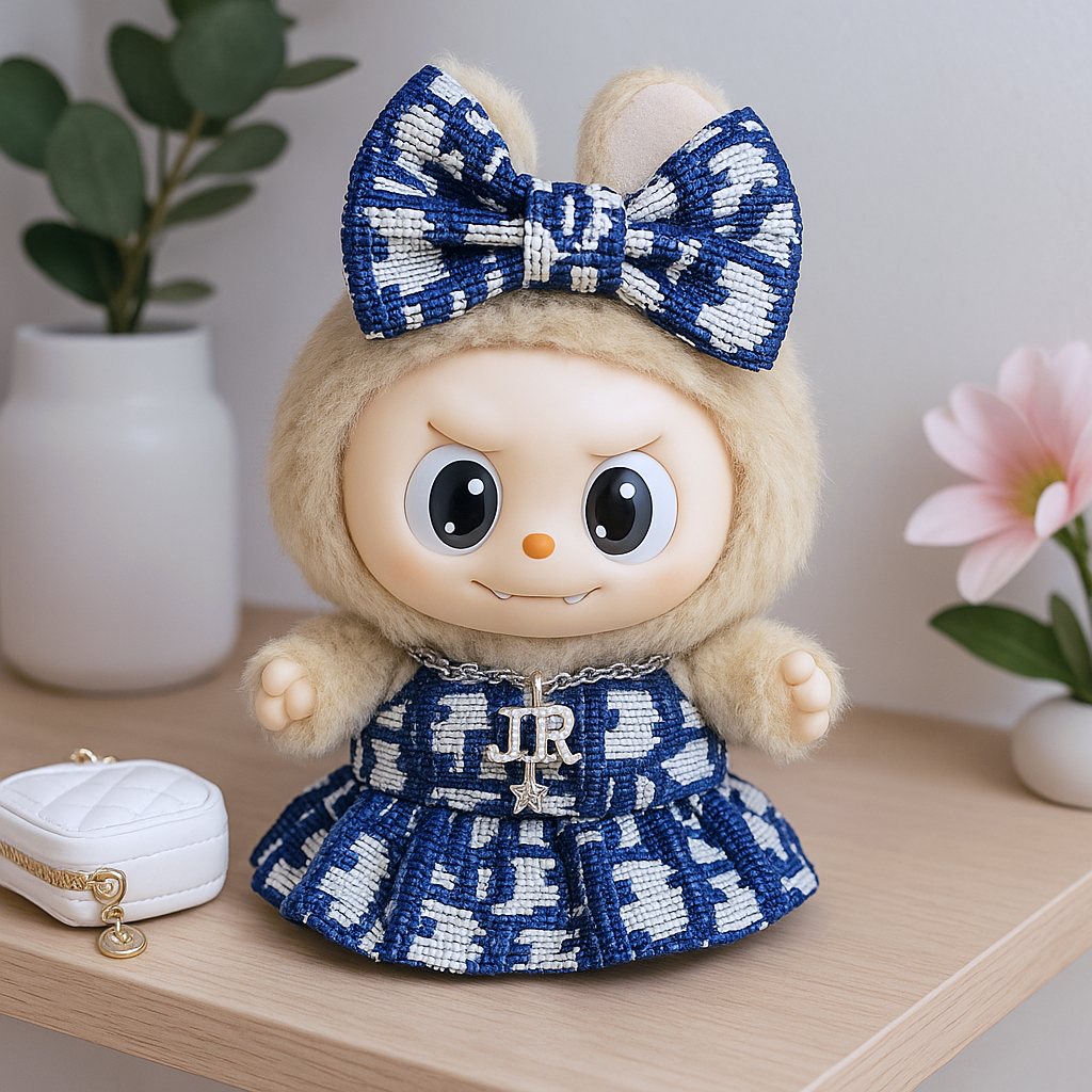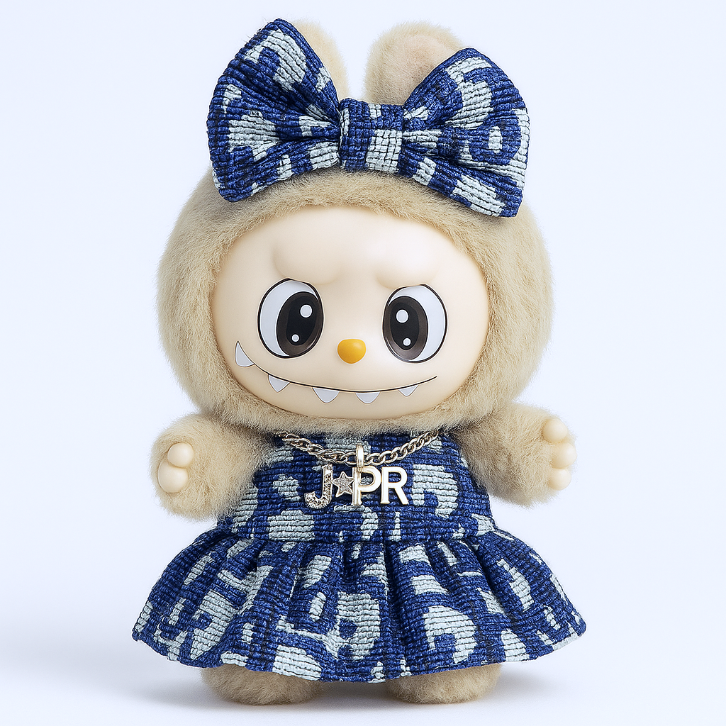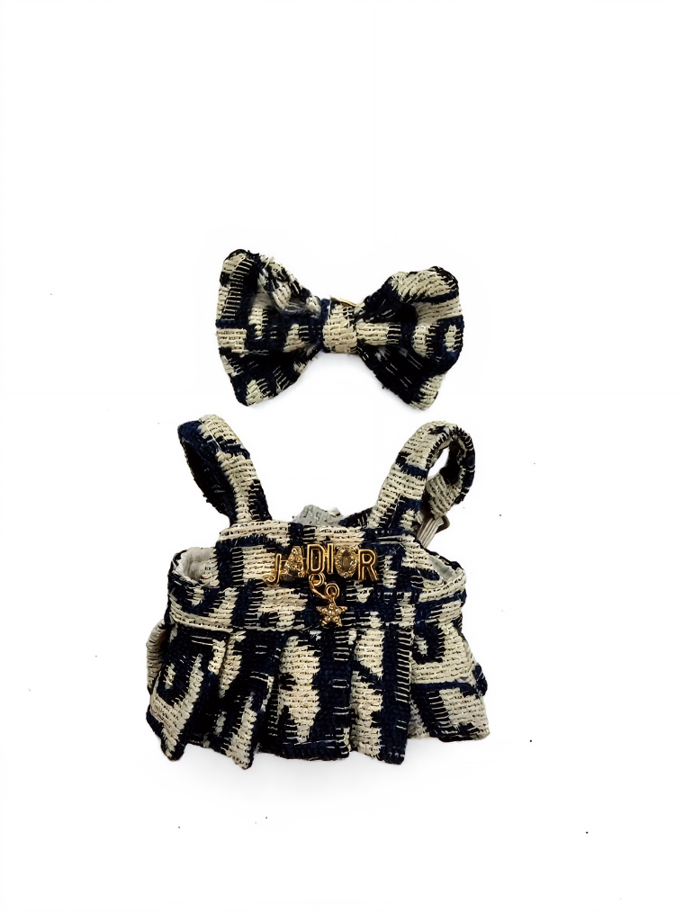 Stylish D Brand blue dress with matching handbag and bow accessories. A complete ensemble for the fashion-conscious collector.